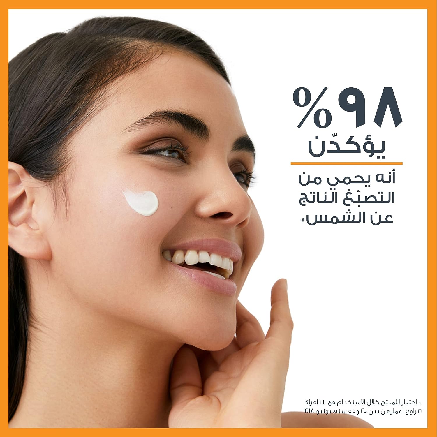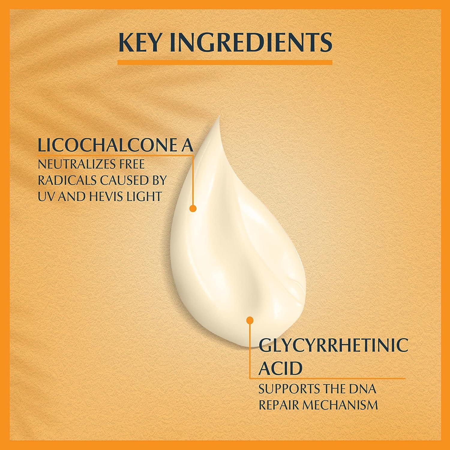 Facial sunscreen to prevent sun spots UV light is the main cause of sun-induced skin damage, but high-energy visible (HEVIS) light can also induce free radicals that cause further stress to skin. Sunlight triggers an increase in melanin production which may lead to hyperpigmentation concerns such as sun spots. Eucerin Sun Face Pigment Control Fluid SPF 50+ is an everyday facial sunscreen for all skin types that helps to prevent sun-induced hyperpigmentation. The Advanced Spectral Technology combines broadband and photostable UVA/UVB filters¹ for very high UV protection with Licochalcone A to neutralize free radicals caused by UV and HEVIS light. The anti-pigment sunscreen also includes Glycyrrhetinic Acid which supports skin’s own DNA repair mechanism. The formula is further enriched with Thiamidol, an effective and patented ingredient that acts at the root cause of hyperpigmentation. It visibly reduces dark spots over time and, when used regularly, prevents their re-appearance. Eucerin Sun Face Pigment Control Fluid SPF 50+ has a pleasant light texture that absorbs quickly and is clinically and dermatologically proven to be well tolerated, even by sensitive skin. (1) Meeting the high standards for UVA and UVB protection defined by Cosmetics Europe. The levels of UVA protection are higher than the EU recommendation.